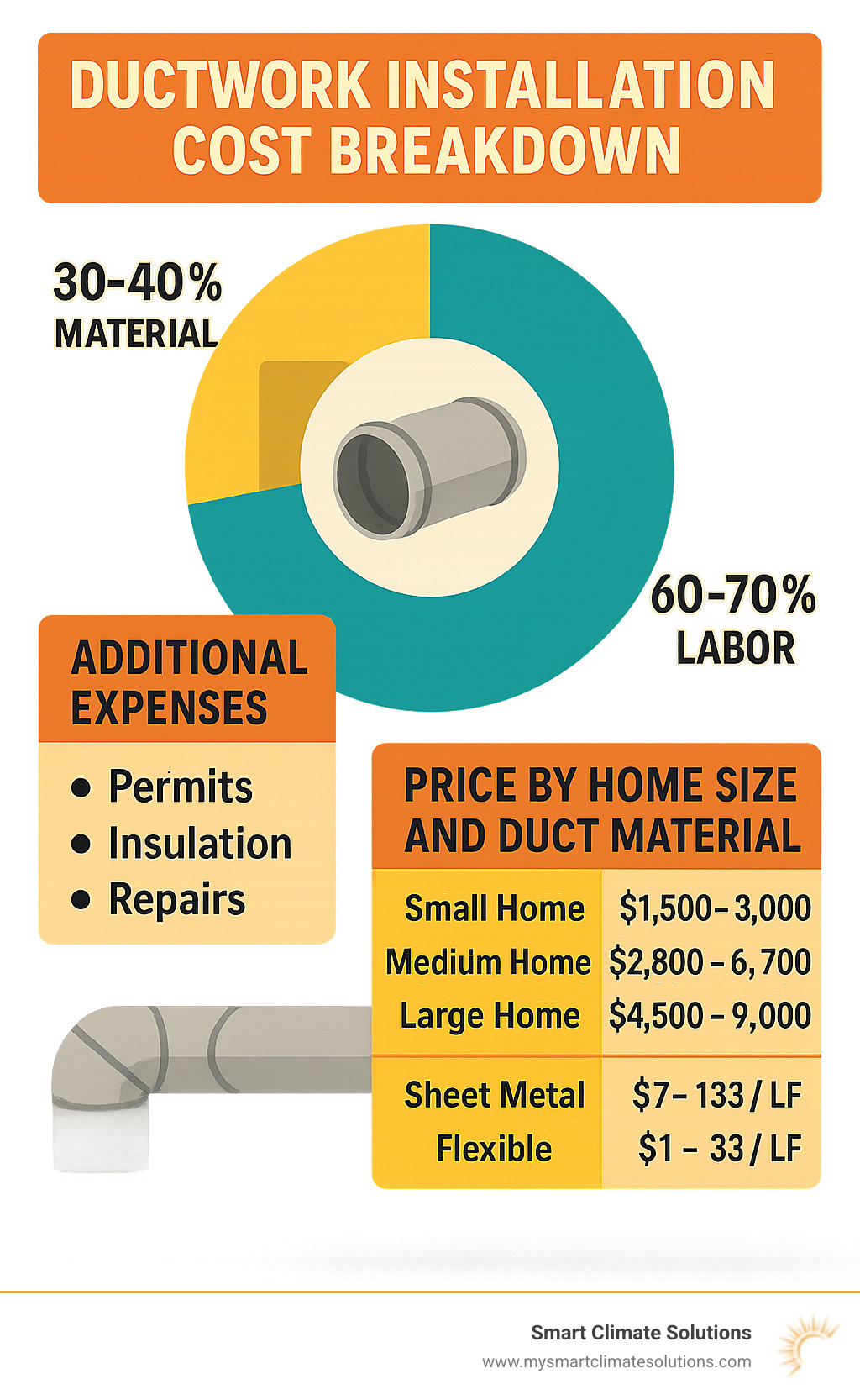 The ductwork installation cost typically ranges from $2,000 to $5,000 for most homes, with a national average of about $3,000. Here's what you can expect to pay: